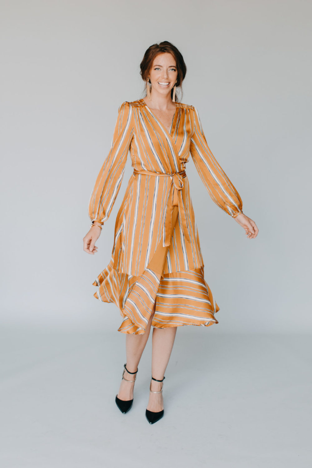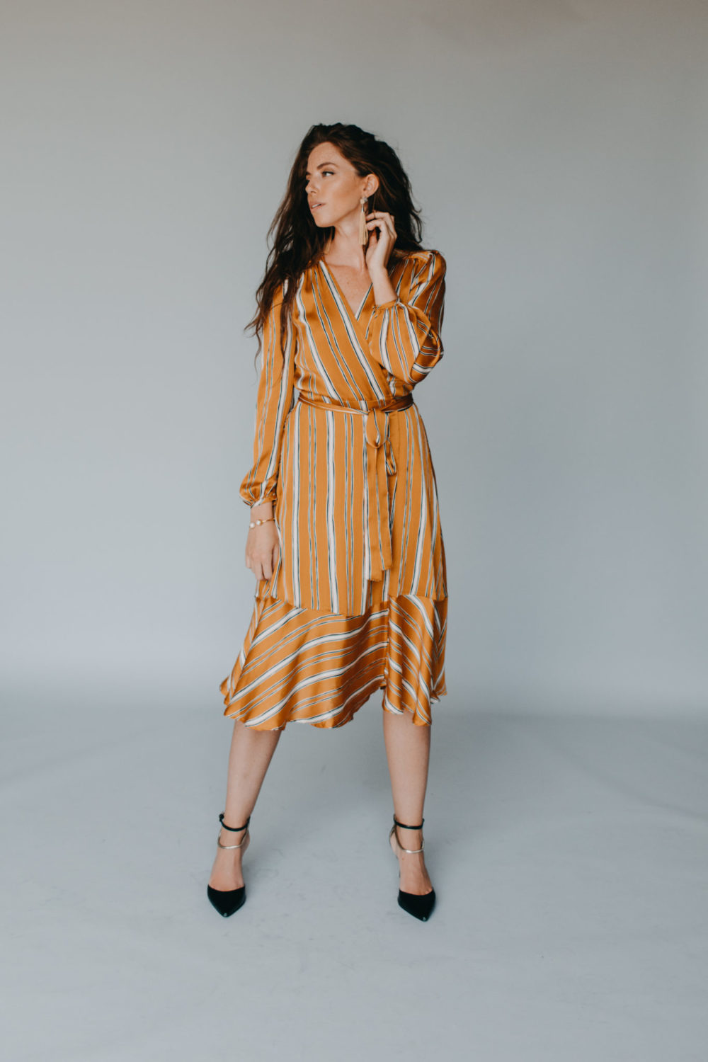 We are obsessed with this shade of yellow for Fall. It’s complimentary on all skin tones. Also, who doesn’t love a good wrap dress?